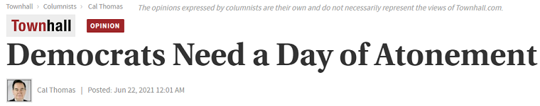 "Critical Race Theory" is much in the news these days. What's really needed, however, is not theory but actual "Critical Race History," and Townhall's Cal Thomas provides it in this commentary titled, "Democrats need a day of atonement."