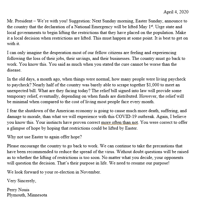 How about Mother's Day? How much business was lost because dine-in restaurants were closed? Sales tax revenues lost, gas tax revenues lost, fishing license revenue lost, and property taxes are coming due with no revenue stream coming in to pay them. All this is happening while MN Gov. Walz fiddles with his dials. Minnesota businesses can reopen responsibly. Let them!