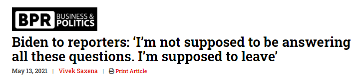 I wish an ambitious reporter would ask President Biden* who is telling him he shouldn't answer questions. He has responded this way more than once. Biden* makes reference to getting into trouble.