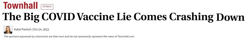 It's finally happening. More and more information is coming to light about the supposed COVID "vaccines," how they were sold to the public, how safe and effective they truly are, and the efforts that were made to suppress information that questioned all of it. Townhall's Katie Pavlich captures all of it in her report, "The Big COVID Vaccine Lie Comes Crashing Down."