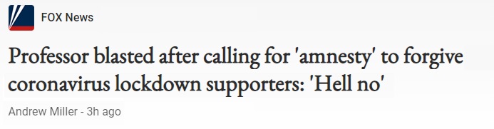 You probably heard about a professor who wrote an article for the Atlantic Magazine in which she calls for a "COVID Amnesty" for those who supported lockdowns during the Coronavirus pandemic. The response has been a furious "Hell No." And rightly so. These people haven't apologized for the panic and havoc they fomented for nearly two years. What's scary is they're more than willing to do it again. What's the argument for amnesty? The answer from the tyrants is "We meant well." Sorry (not sorry), that doesn't cut it. These people ruined lives, literally. Kids have been set back years in their development. Businesses were put out of business. Workers were put out of work.