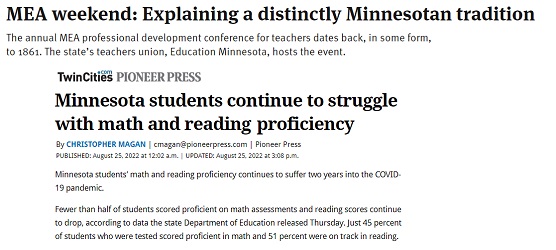 Of course public school educators and administrators blame COVID for the decline, not their increased focus on diversity and equity and gender identity (confusion). It wasn't the virus that closed schools or set education agendas. School Administrators and politicians closed schools in response to a virus, a virus that posed very little threat to children. That fact was known early on, the Spring of 2020. Still, there was a concerted effort to close the schools and there has been irreparable harm done to children as a result.
