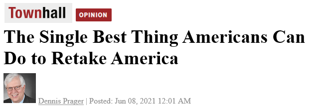 Dennis Prager about what he says we need to do to Retake America." It starts by taking our kids back from them.