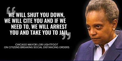 There are now numerous viral videos of law enforcement showing up at businesses, and beaches, and parks, and churches, and wherever someone has complained that people appear to be "too close together." Chicago's Mayor stands out as an exceptionally egregious violater of individual Constitutional rights. I often wish I was a lawyer to be able to challenge some of these dictates that have resulted in clear abuse of power. What is truly frightening is that what we're witnessing these days could be viewed as a dry run for when these same socialist zealots determine climate change is an existential threat to the country.