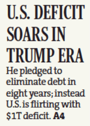 (10/2/18) - US budget deficit expands to $779 billion in fiscal 2018 as spending surges.